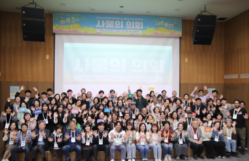 국내 첫 '사물의 의회(Parliament of Things)'가 2025년 11월 1일과 2일, 서울시청에서 100명의 환경 전문가, 교사, 활동가 및 청소년들이 모인 가운데 개최되었습니다. 사물의 의회는 탈인간중심적인 생태민주주의 실험으로, 참가자들은 5개의 비인간 그룹(대기, 해양, 산림, 동물, 기술)과 5개의 인간 그룹(기업인, 노동자, 농민, 미래세대, 사회적 약자)으로 나뉘어 각 주체의 관점을 대변하고 상호의견을 교환했습니다. 참가자들은 숙의 토론과 투표를 통해 기후생태헌법 제정, 자연과 비인간존재의 정치적 대표성을 보장한 기후시민의회 구성, 생태법인 제도화, 기후정의 실현을 위한 기금 마련과 제도적 전환 등을 포함한 10대 요구안을 제안했습니다.