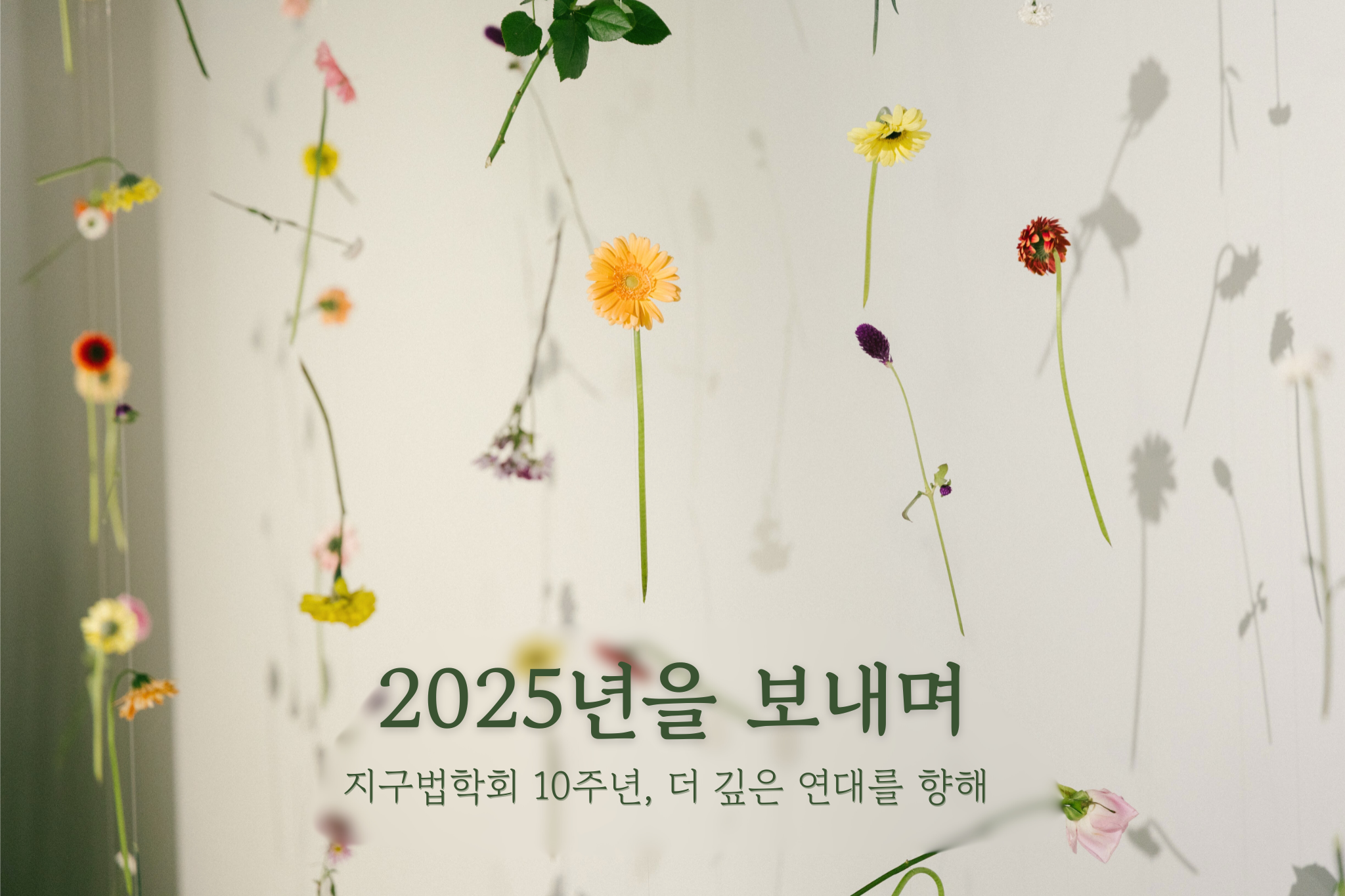 2025년은 지구와사람 10주년이 되는 해이자, 지구와사람과 처음부터 함께 한 지구법학회 10주년을 맞이한 해였습니다. 올해를 마무리하면서 지구법학회 10년(2015년부터 2025년)의 발자취를 돌아보았습니다. 정혜진 지구법센터장은 올 11월 8일에 개최된 10주년 기념 컨퍼런스에서 지구법학회 지난 10년을 ①태동 및 초기 성장기(2015~2017년), ②한국적 지구법학의 탐색기(2017년말~2022년) 그리고 ③현실 적용 노력과 학술적 진전기(2022~현재)로 구분한 바 있습니다. 각 시기에는 그 시기를 대표하는 학회 공부의 결과물인 『야생의 법』과 『지구를 위한 법학』 및 『최후의 전환』, 그리고 『지구법학』과 『지구법강좌』가 출현했습니다. 센터장은 지구법학회의 성과로 국내에 지구법을 도입· 확산한 것을, 한계로는 공부 모임 활동의 저조와 제한된 연구자로 들고 있습니다. 그러면서 학회의 향후 10년을 읽으며 쓰며 참여하기와 보다 많은 이들과의 네트워킹을 통한 학회공동체의 확장, 그리고 지구법에 기반한 철학과 가치관의 확산을 제시하였습니다.